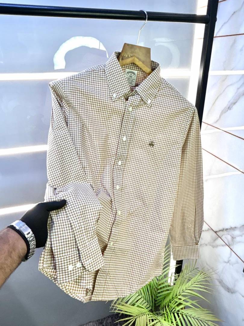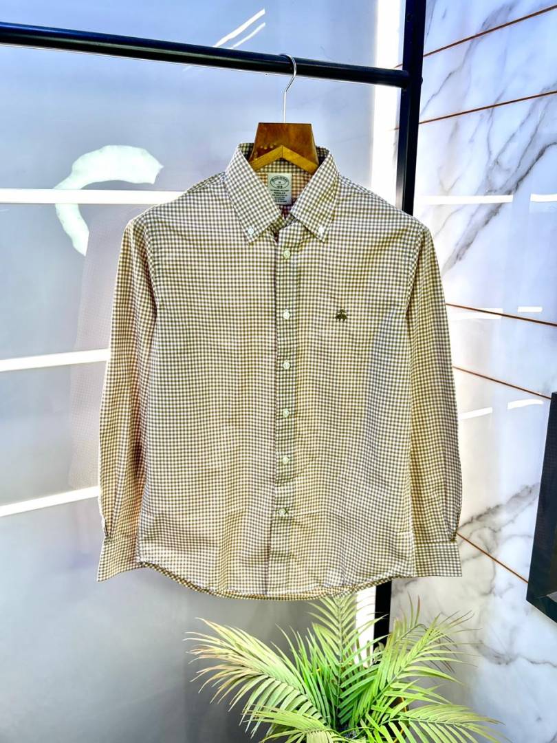 Brooks Brothers Micro Checks Beige Oxford Lycra Premium Shirts F2934-BE