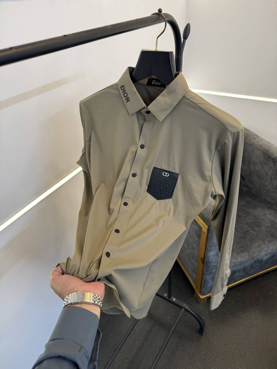 ? *Dior turkish imported fabric shirt with patch logo on and chest and brand name on collar now available in stock*?