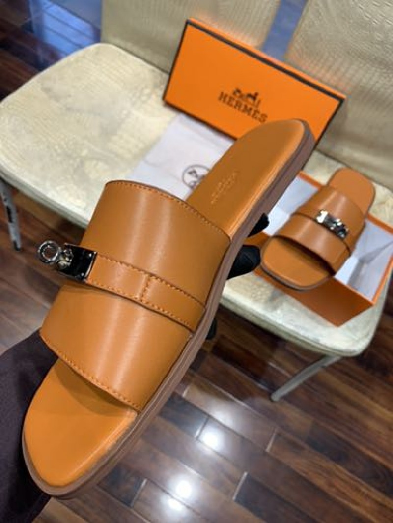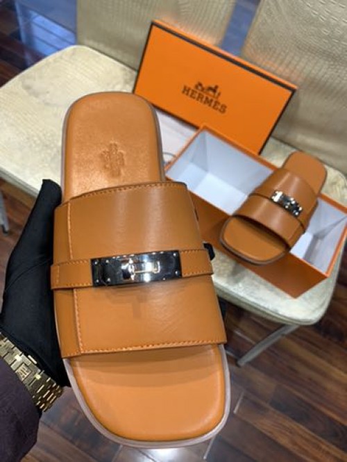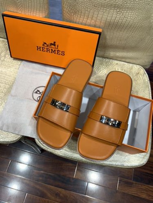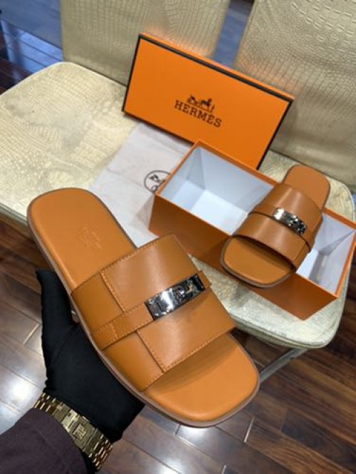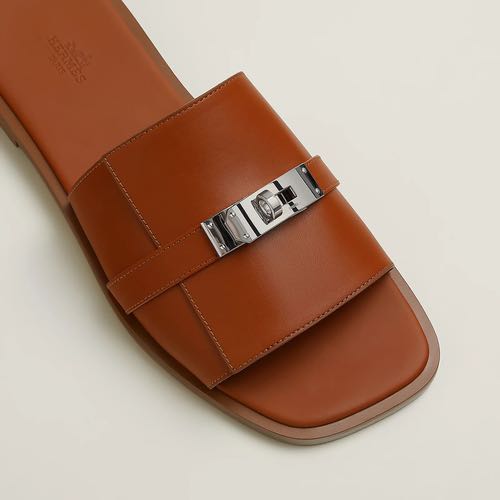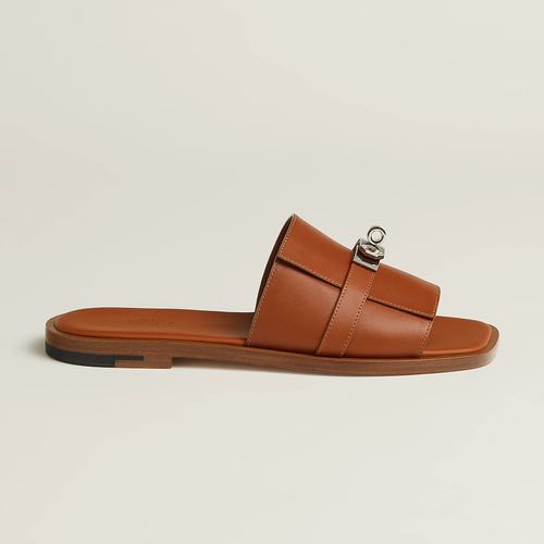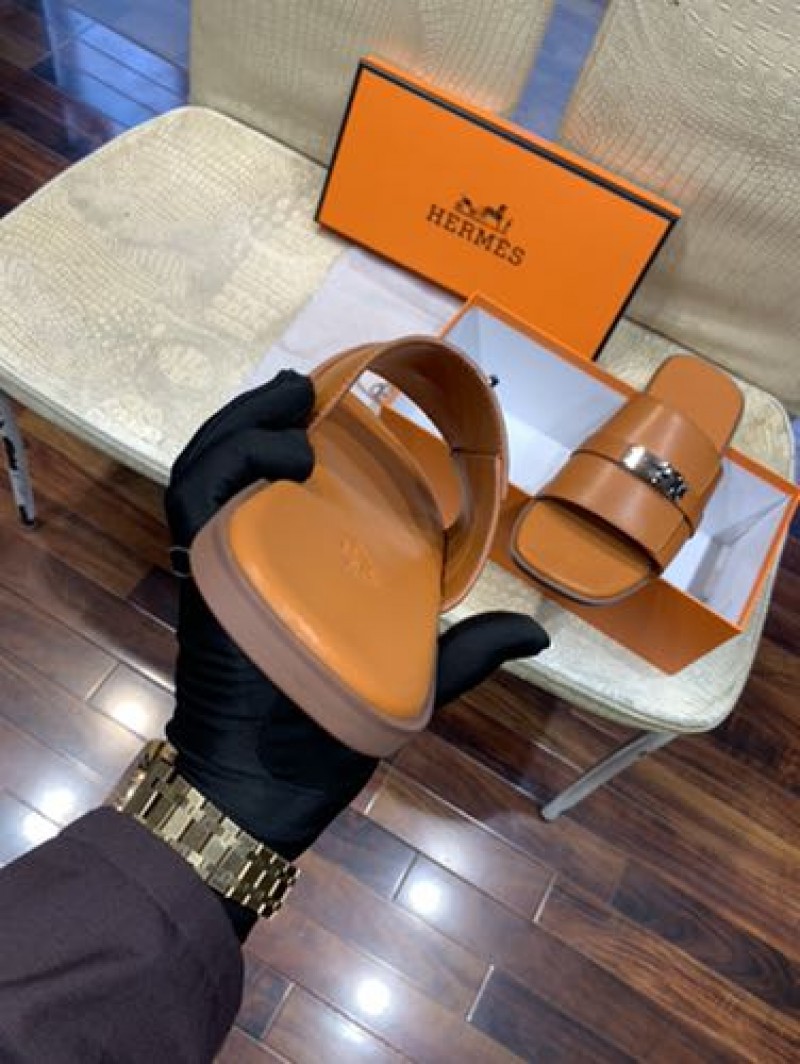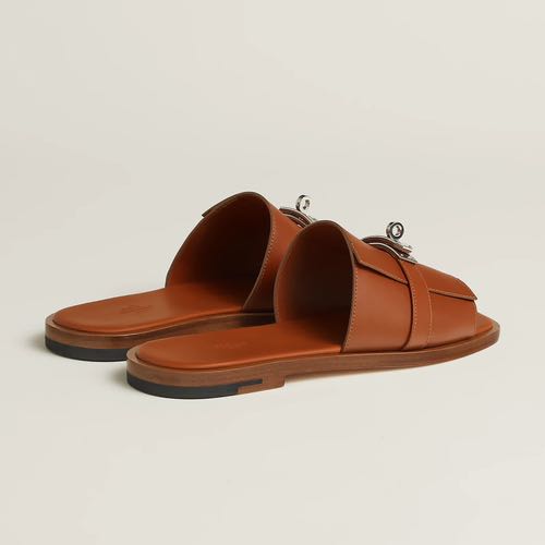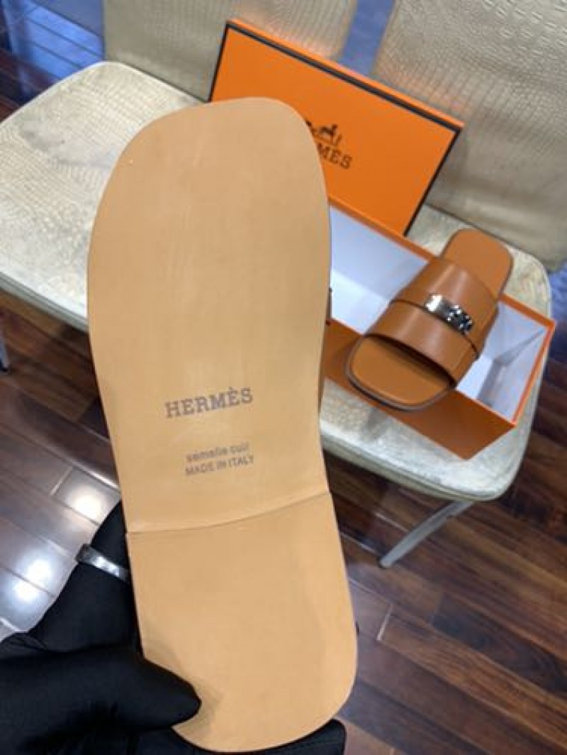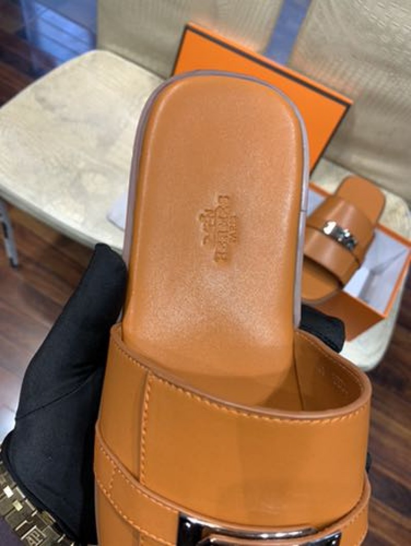 HERMES BROWN PREMIUM LEATHER SLIDE