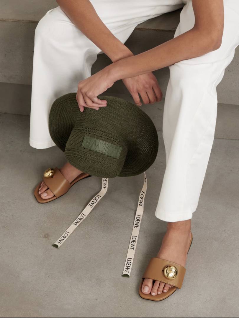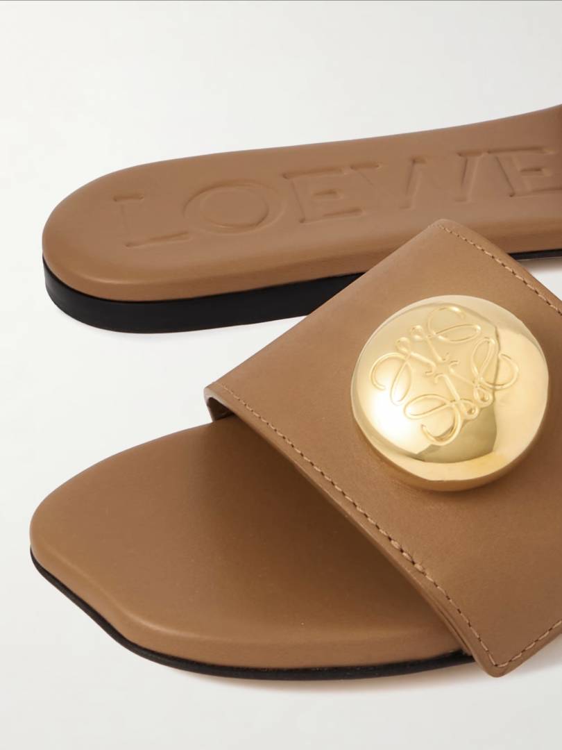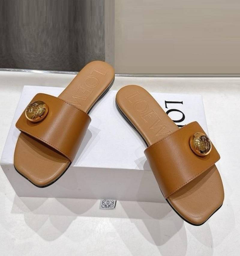 Loewe Pebbled Leather brown Slides For Women With Original Box