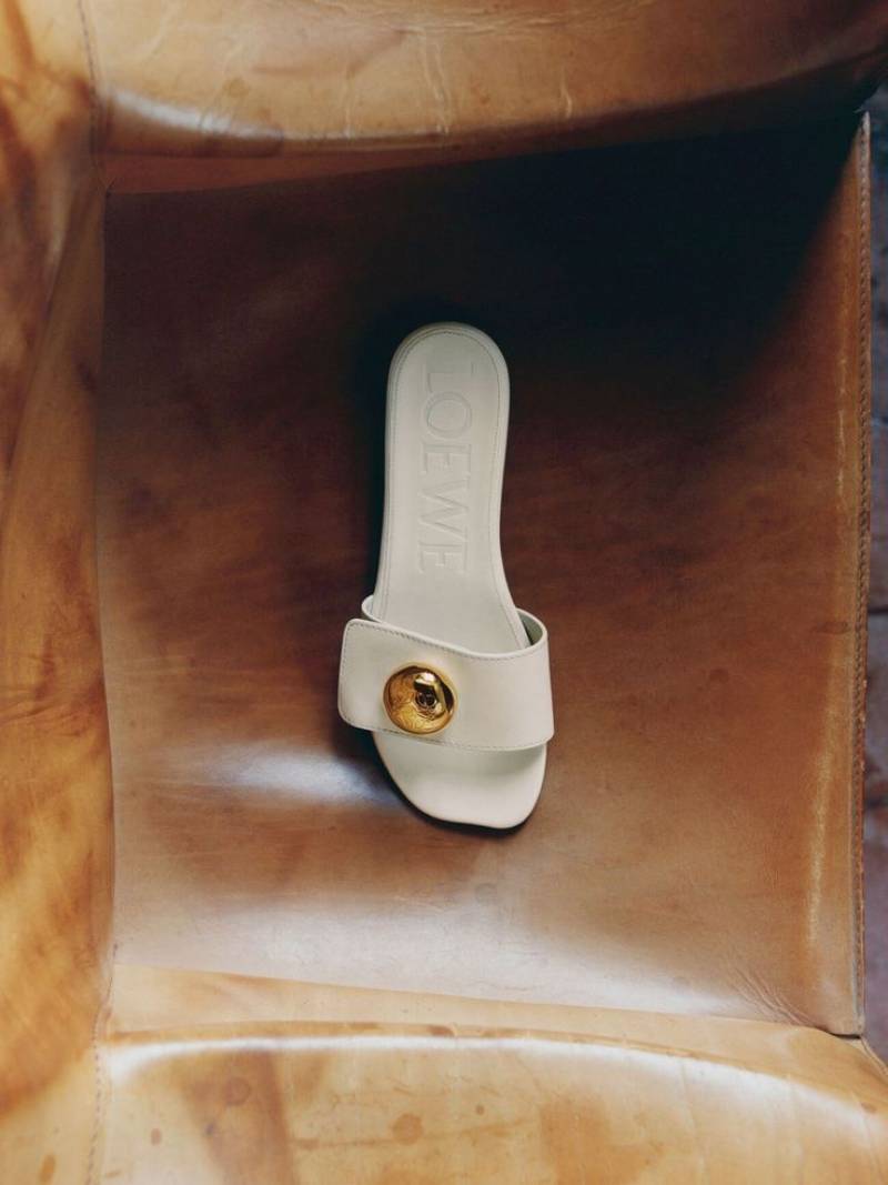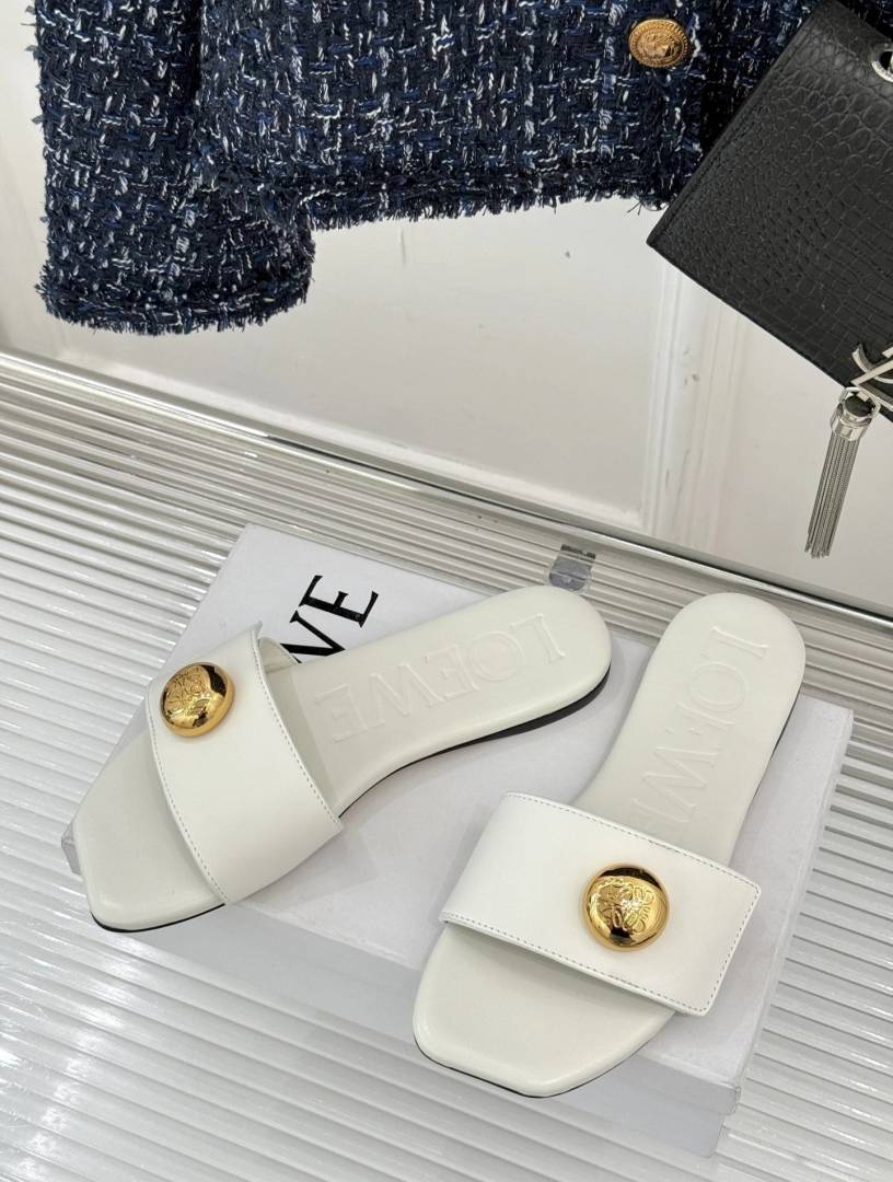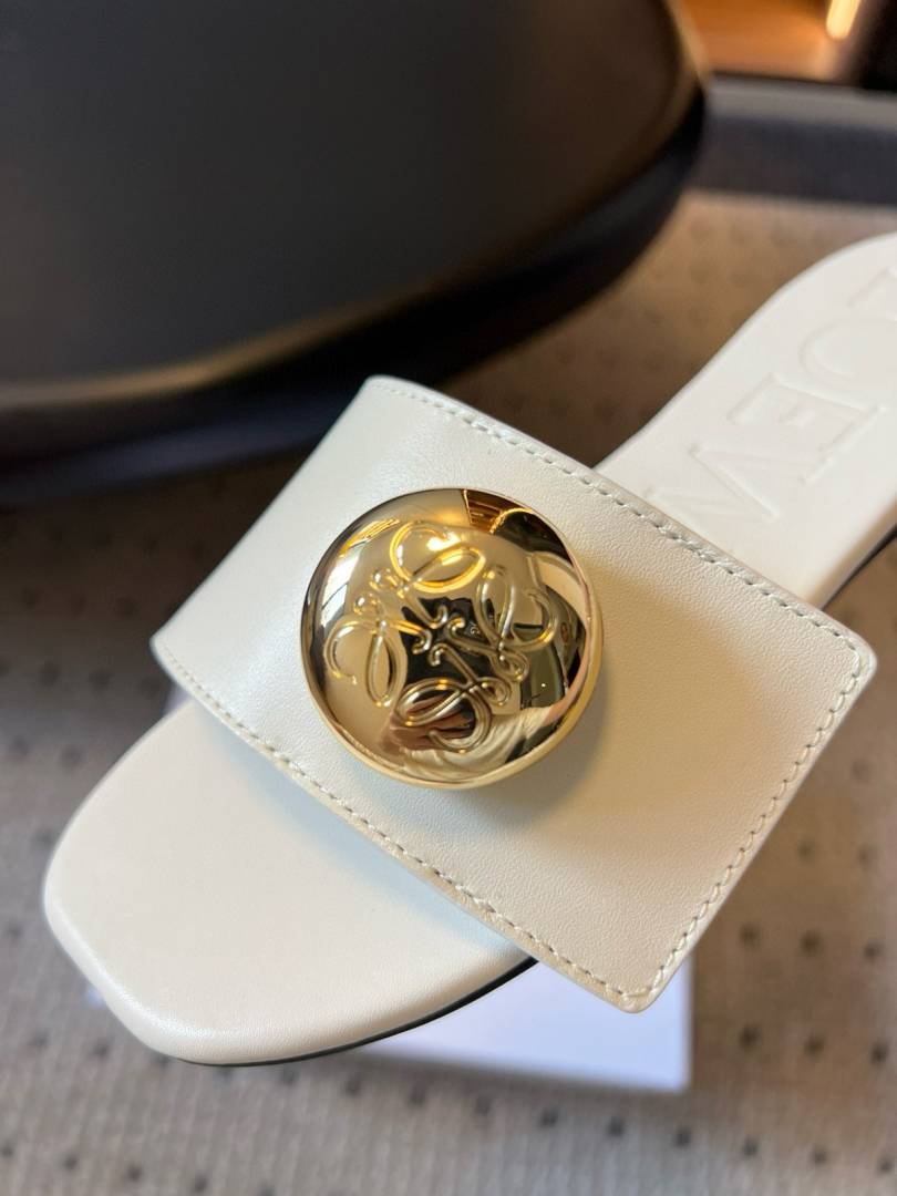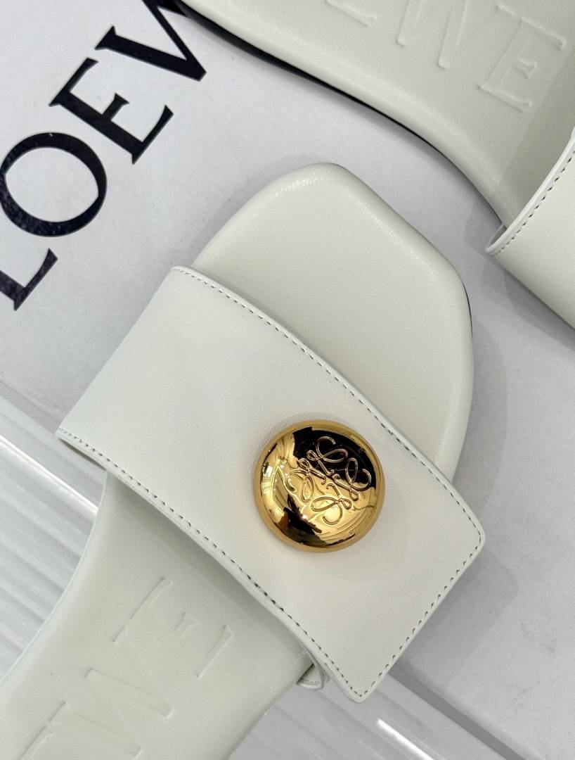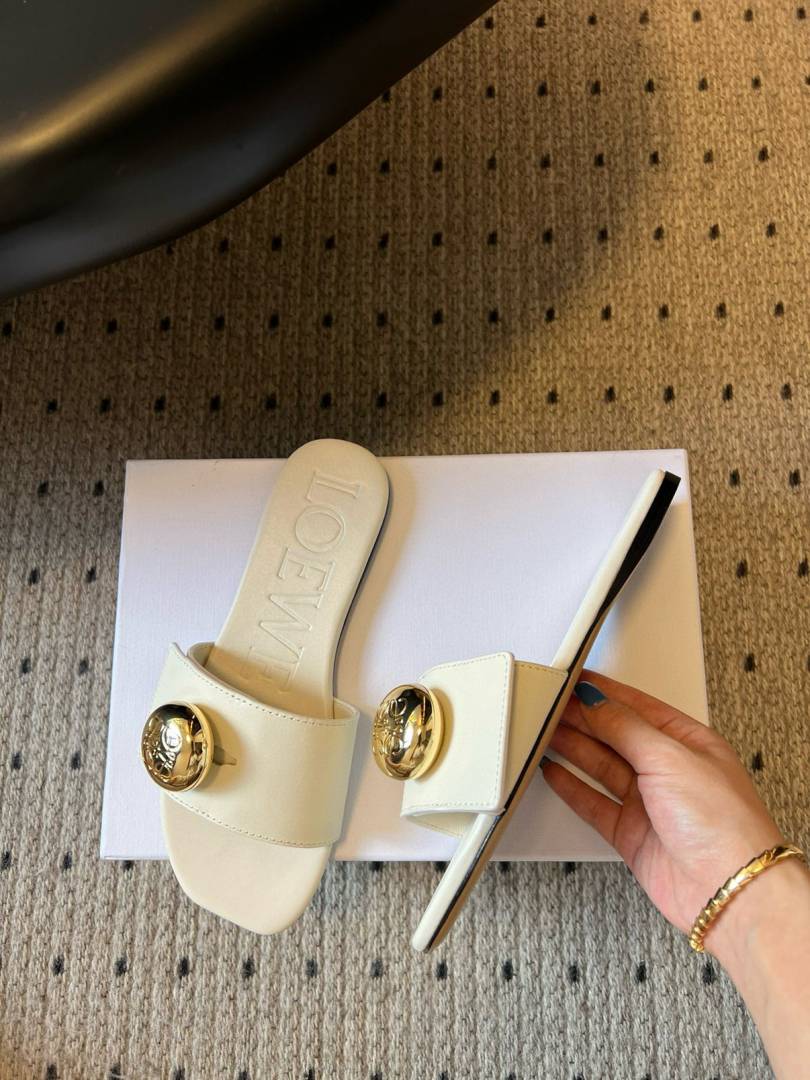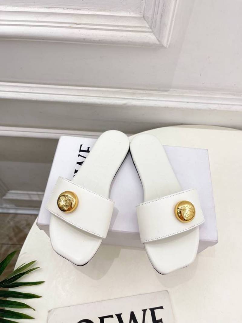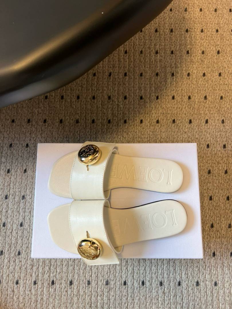 Loewe Pebbled Leather White Slides For Women With Original Box And Carry Bag