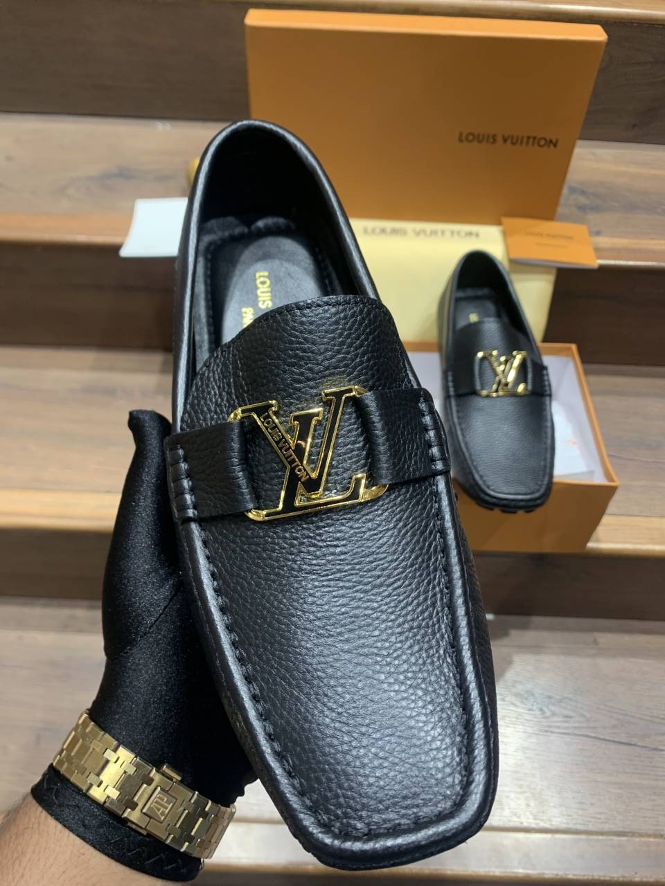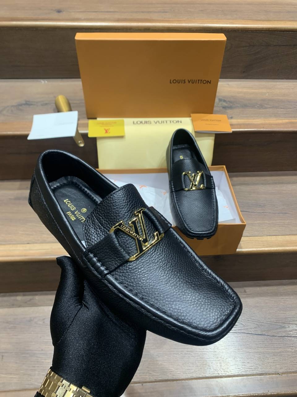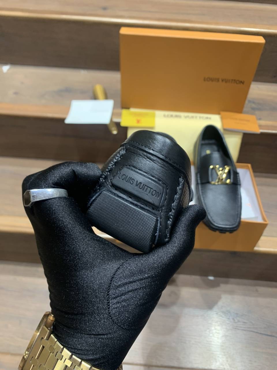 LOUI_S VUITTON BLACK GOLD LOGO PREMIUM LEATHER LOAFER