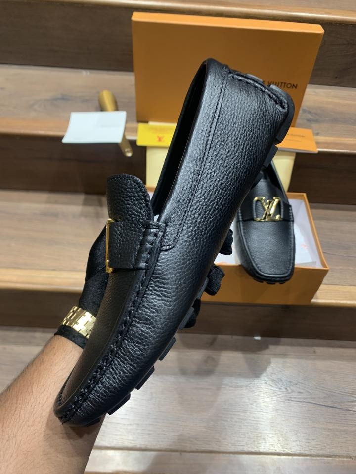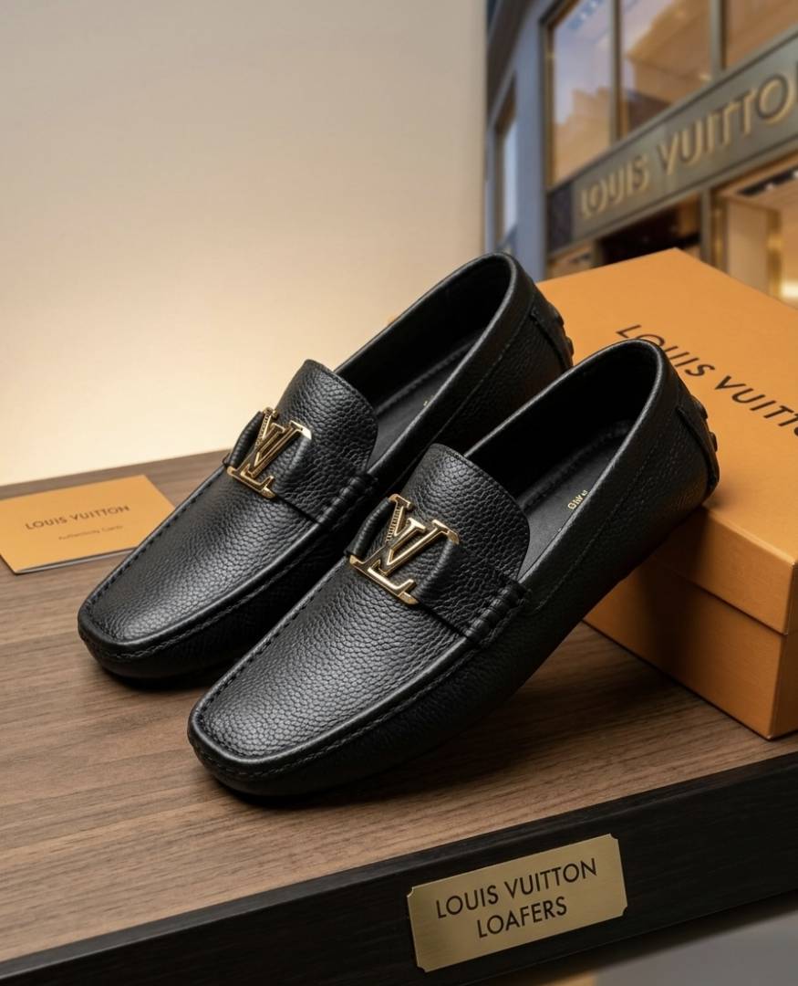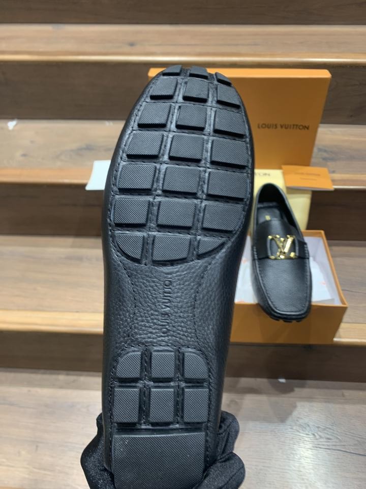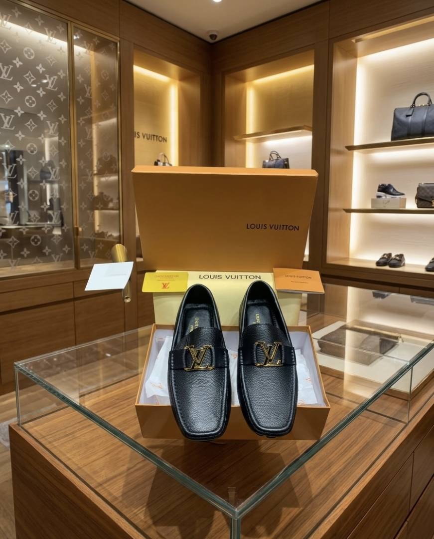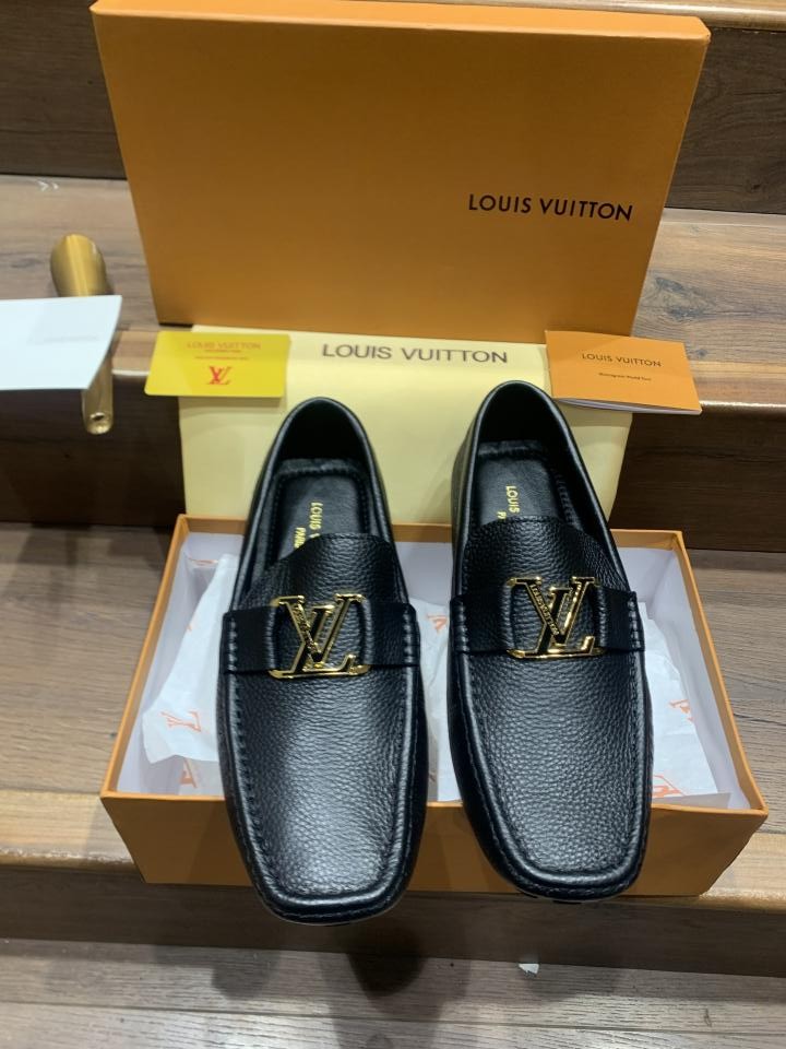 LOUI_S VUITTON BLACK GOLD LOGO PREMIUM LEATHER LOAFER