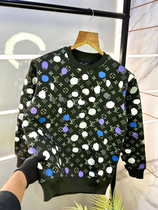 Louis_Vuitton Monogram Print Imported Dark Green Super Premium Sweatshirts F1206