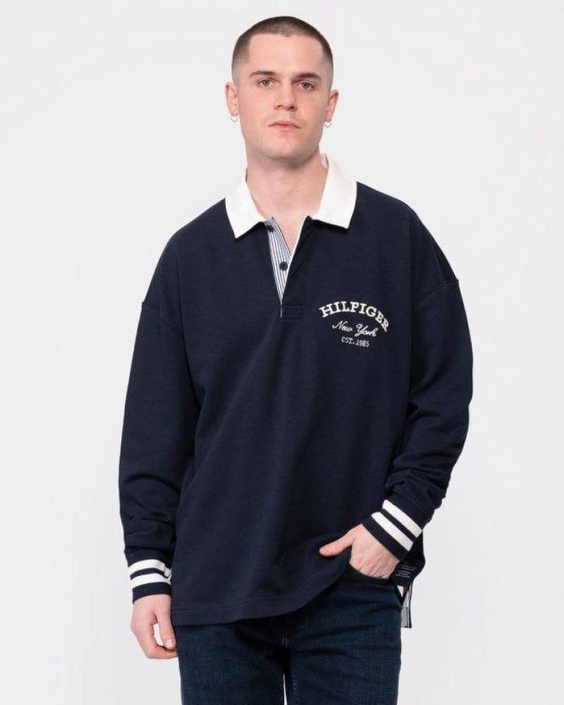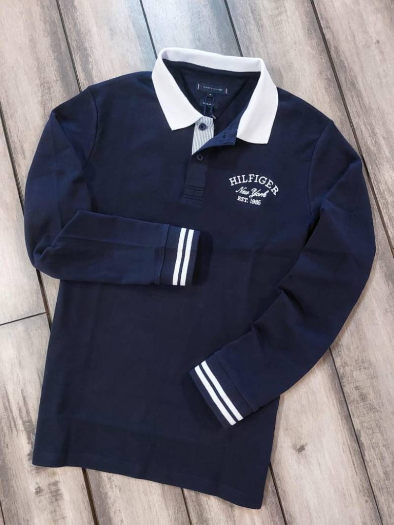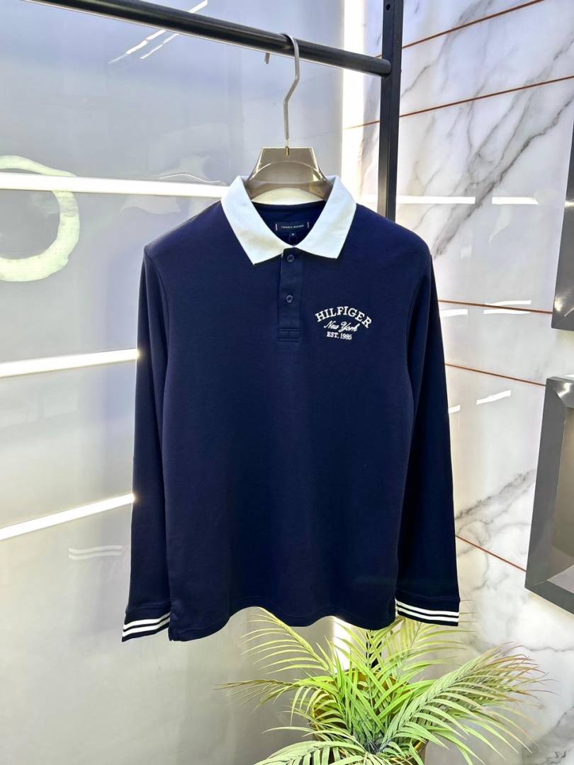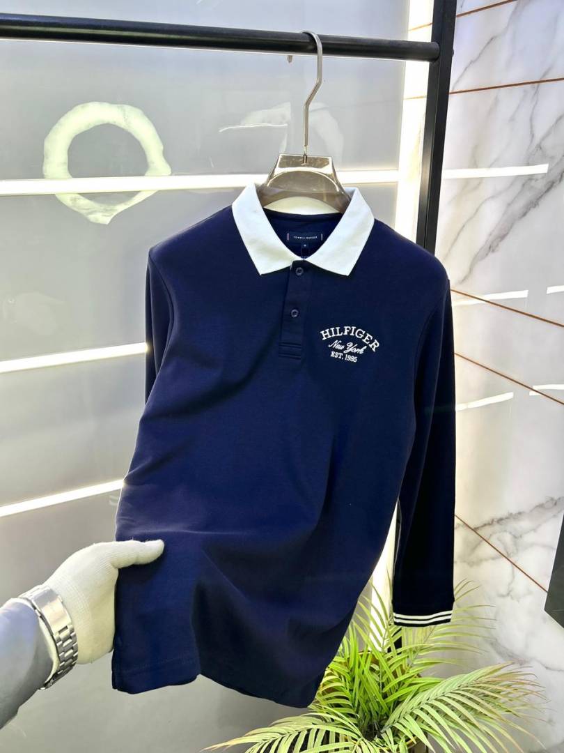 Tommy_Hilfiger Navy Polo Neck Full Sleeves Premium Collar T-shirt F3399-NY