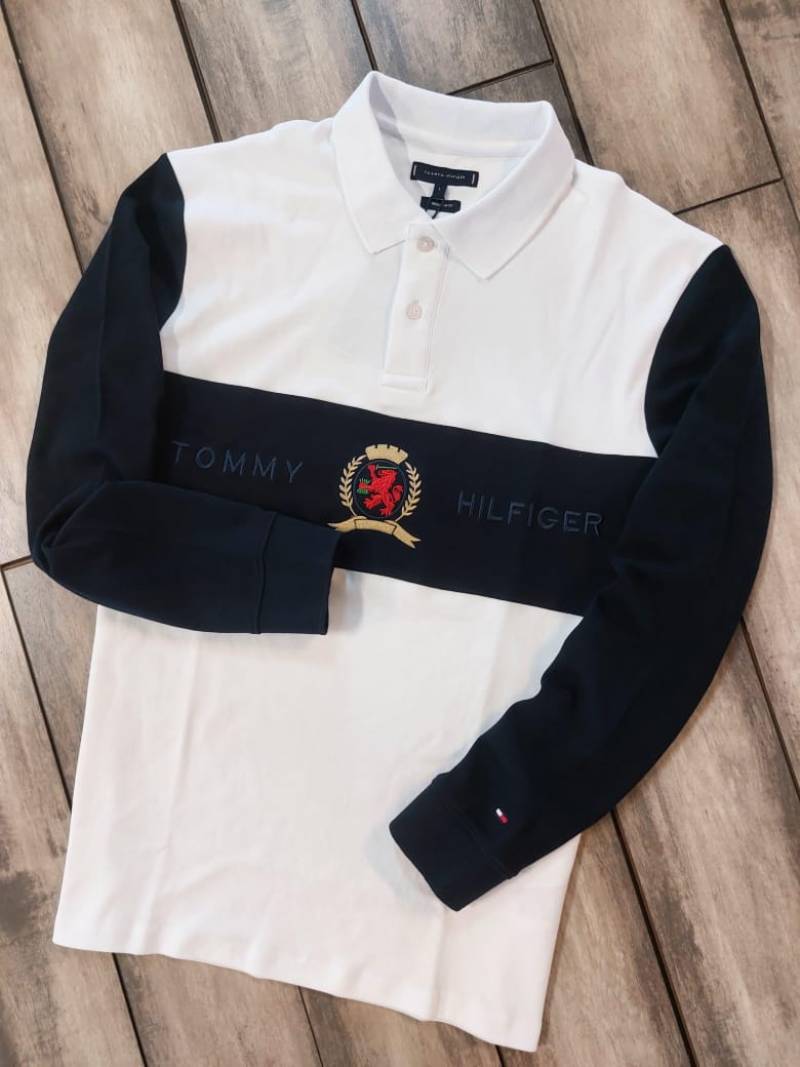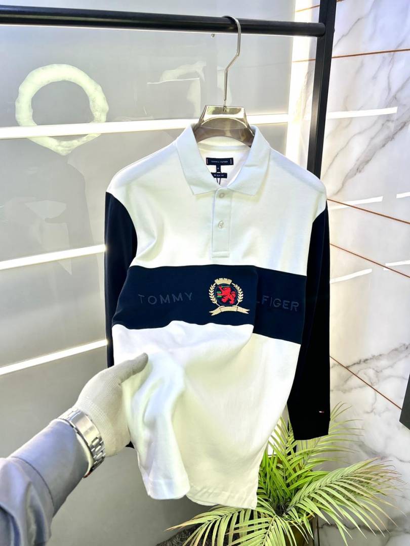 Tommy_Hilfiger White Polo Neck Full Sleeves Premium Collar T-shirt F3399-W2